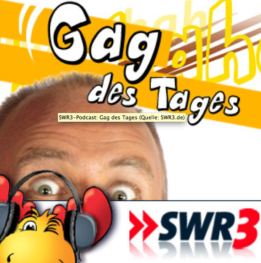 Auch dieser Podcast kommt vom SWR und nennt sich Gag des Tages. Und dort versammeln sich all die lustigen Comedy Sendungen die SWR 3 so über den Äther schickt. Würde jemals der Sender mit den klügsten und besten Comedy-Serien gekürt, der SWR müsste mit Abstand gewinnen. Ich bin seit Herrn Piepenbrink, Taxi Sharia und Höllentrip bei Feinkost Zipp süchtig. Auch die neueste Comedy „Wissen vor Vier“ ist wieder genial. Und auch die Ballermann Nachrichten sind hörenswert.